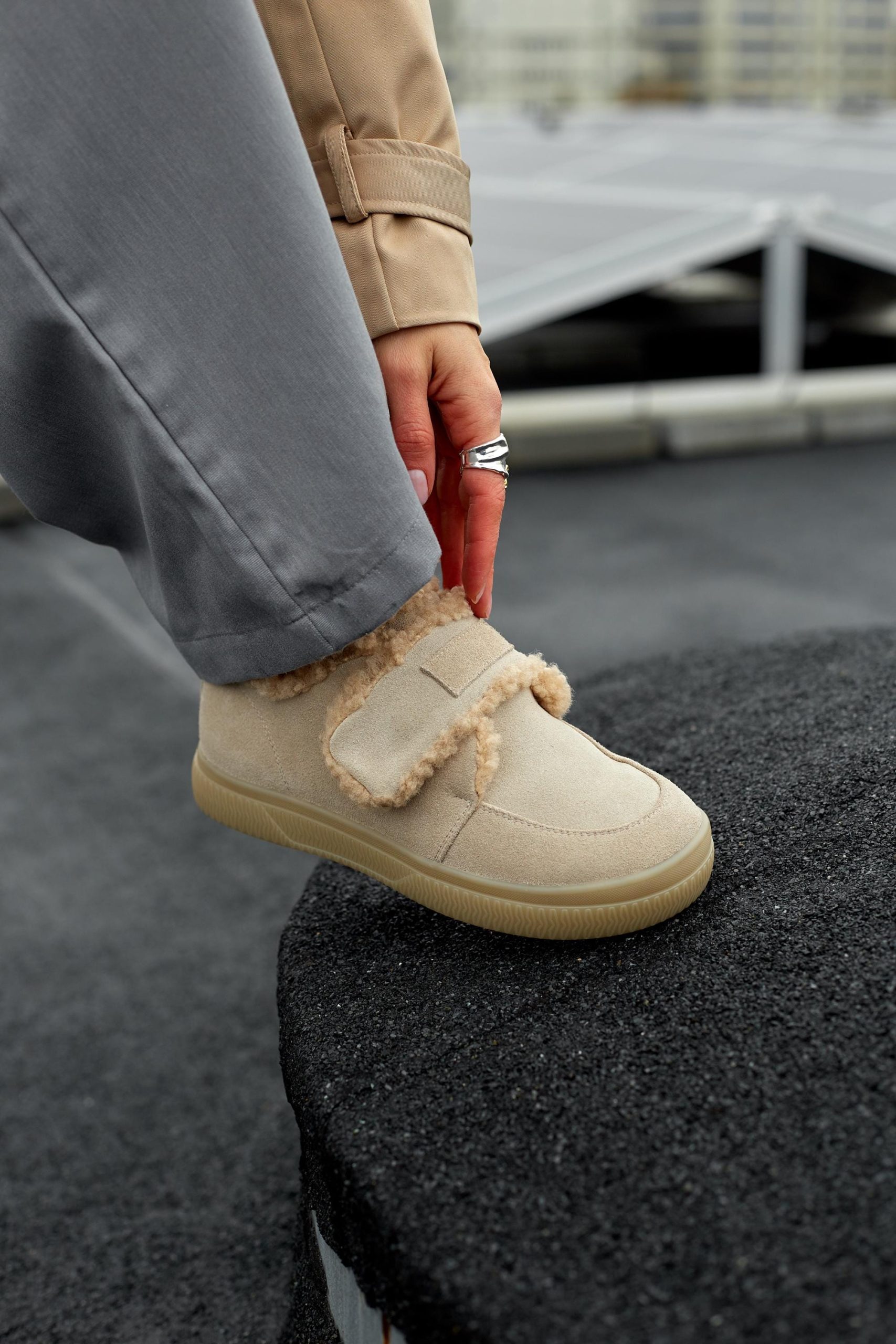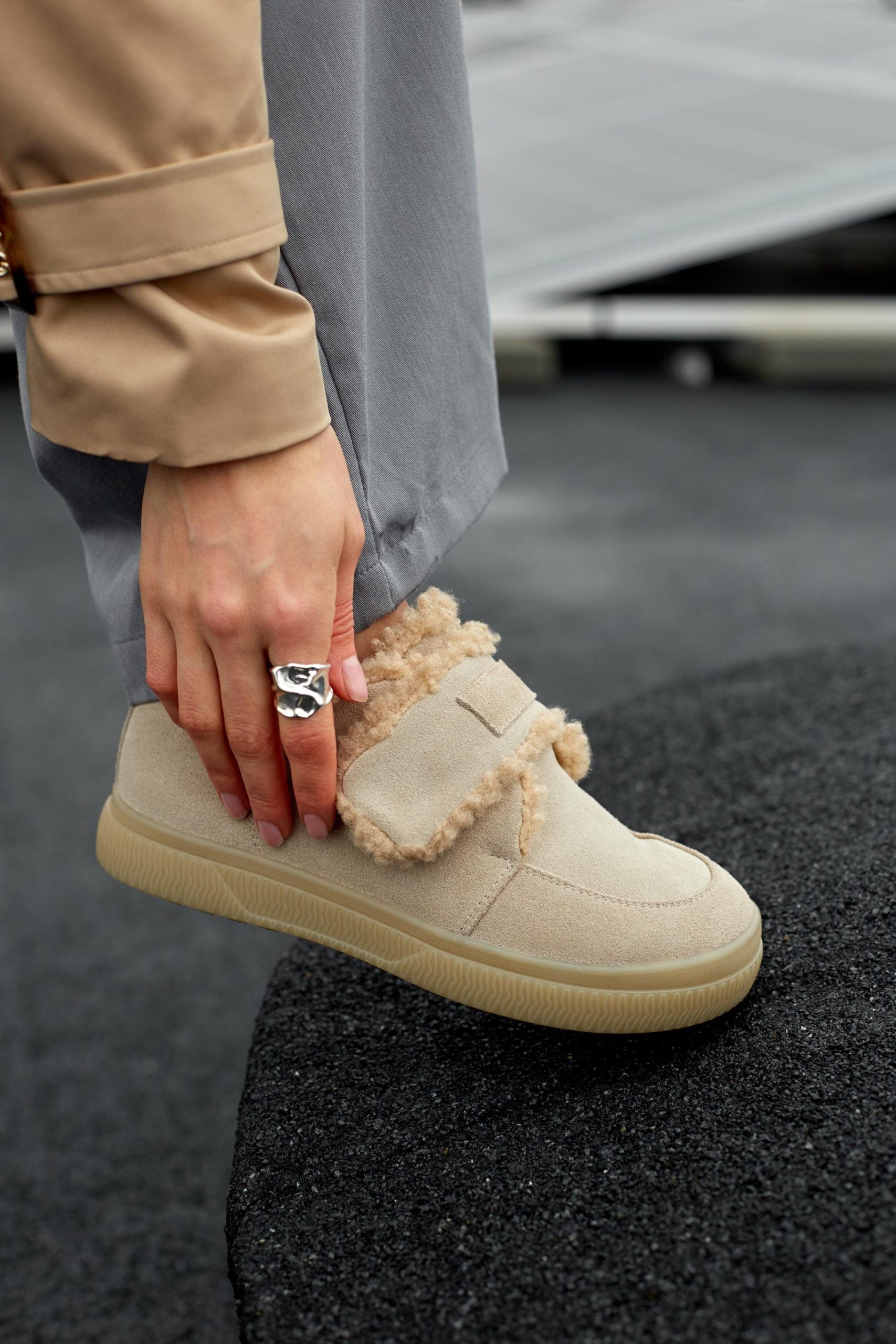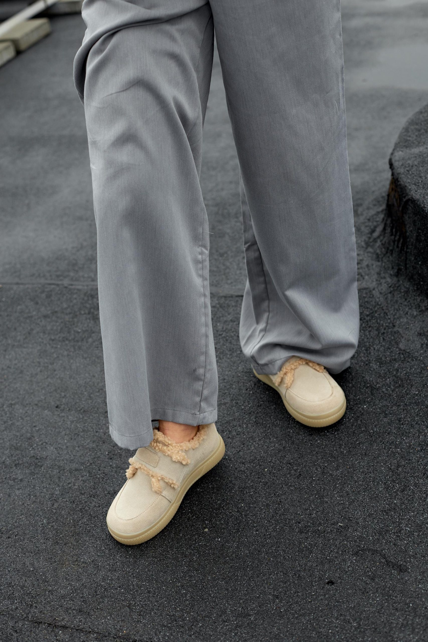 Beige Suede Winter Shoes Warm Daily Clogs Cozy