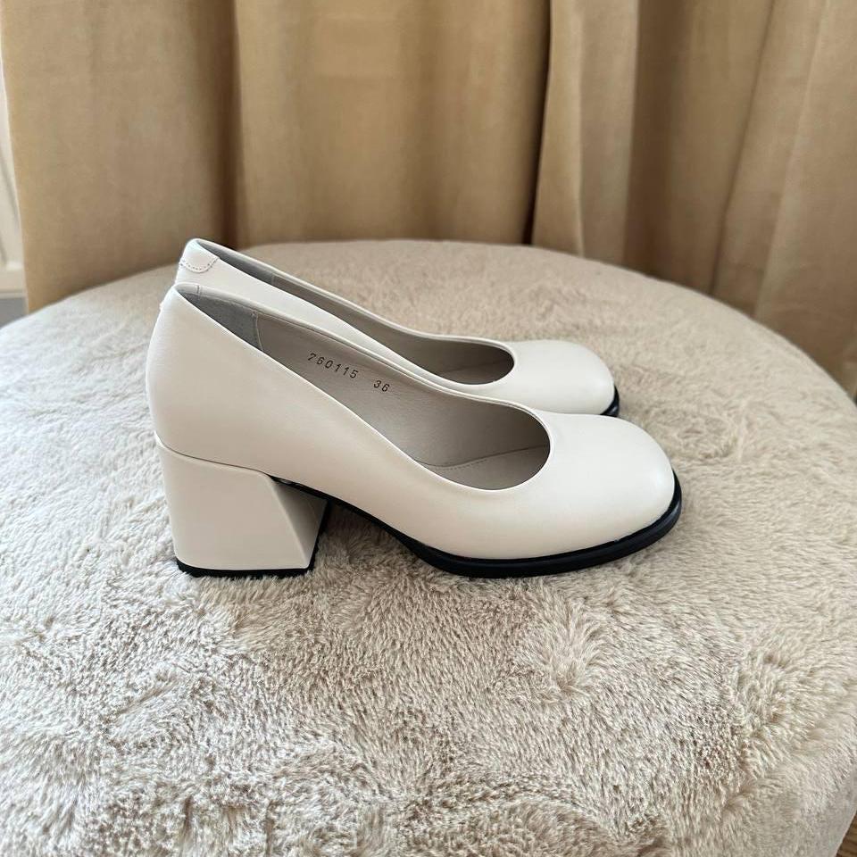 Leather Bridal Wedding Shoes Milky Low Block Heel