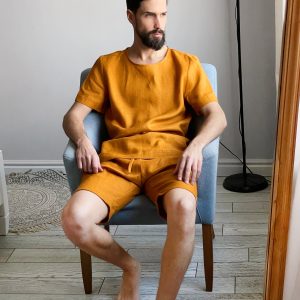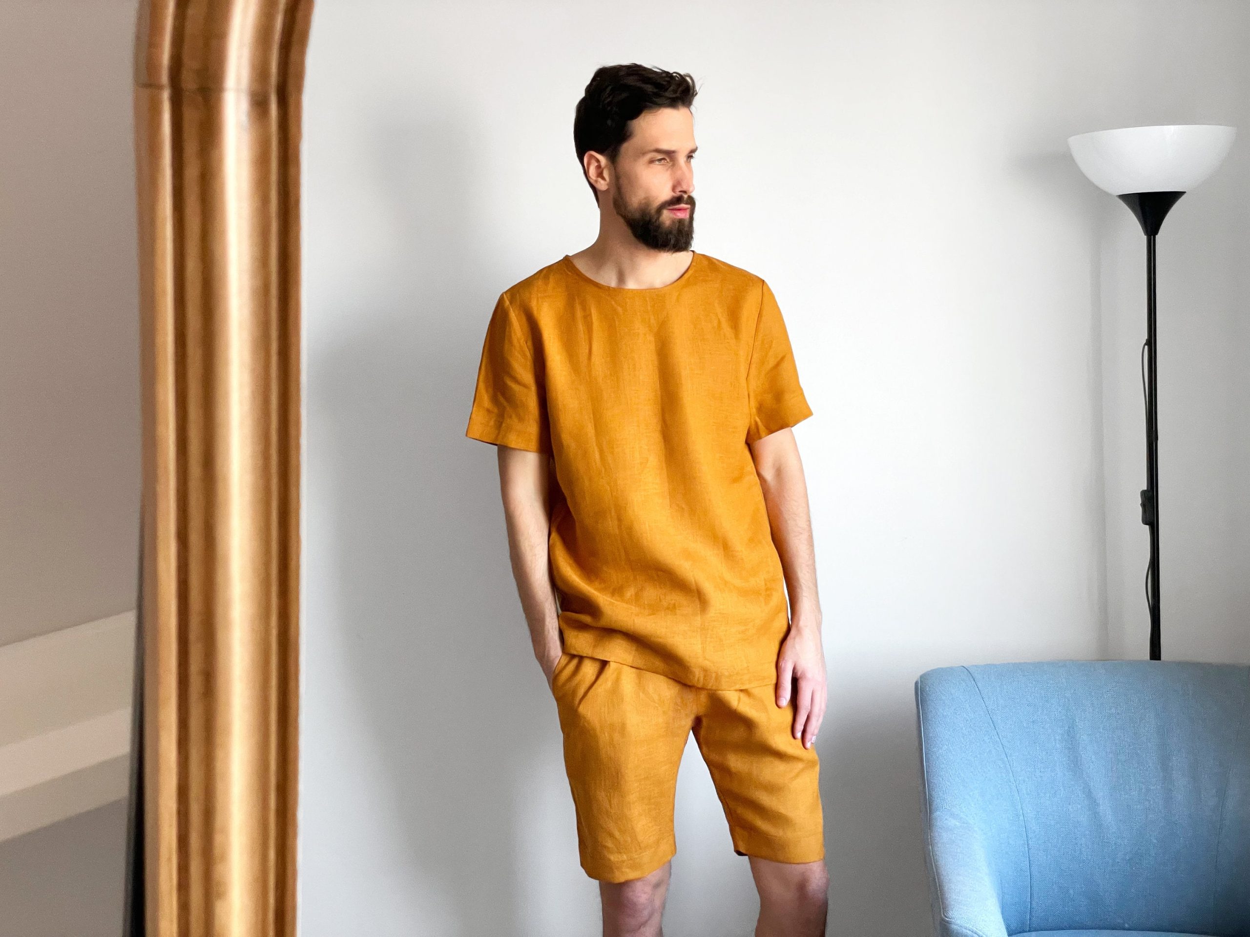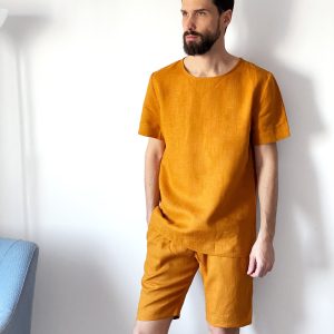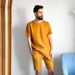 Comfortable and stylish men’s t-shirt. Natural linen. The fabric is natural and takes the body shape, over time it becomes softer. Men’s Linen T-Shirt makes a luxurious and functional gift for that special man in your life.