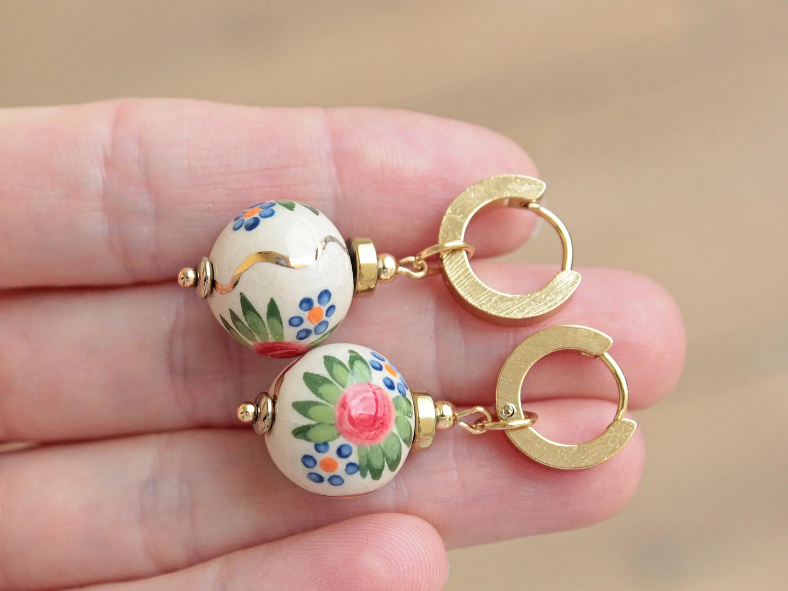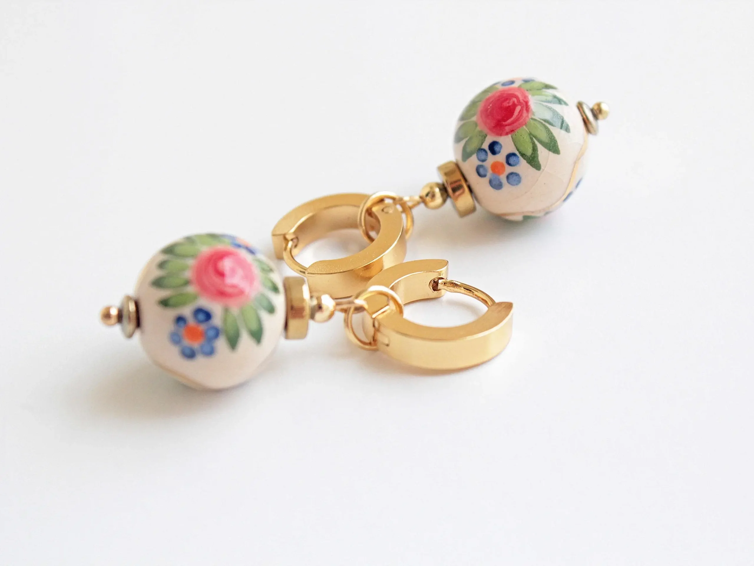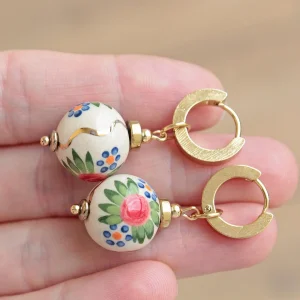 Statement Ukrainian Ethnic Beaded Earrings Holiday Artist White